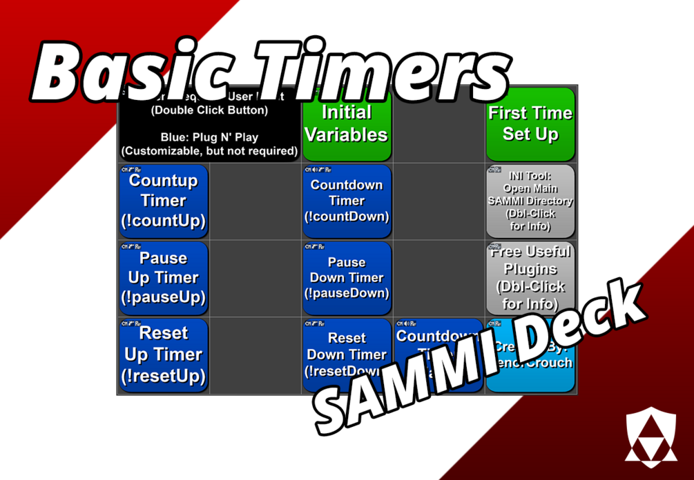 Looking for a Countup Timer or a Countdown Timer? Let me help out with this Sen-Custom SAMMI Deck! Basic Timers comes equipped with not only a Countup Timer but also a Countdown Timer and all you need is to have an OBS GDI+ Text Source at the ready!
