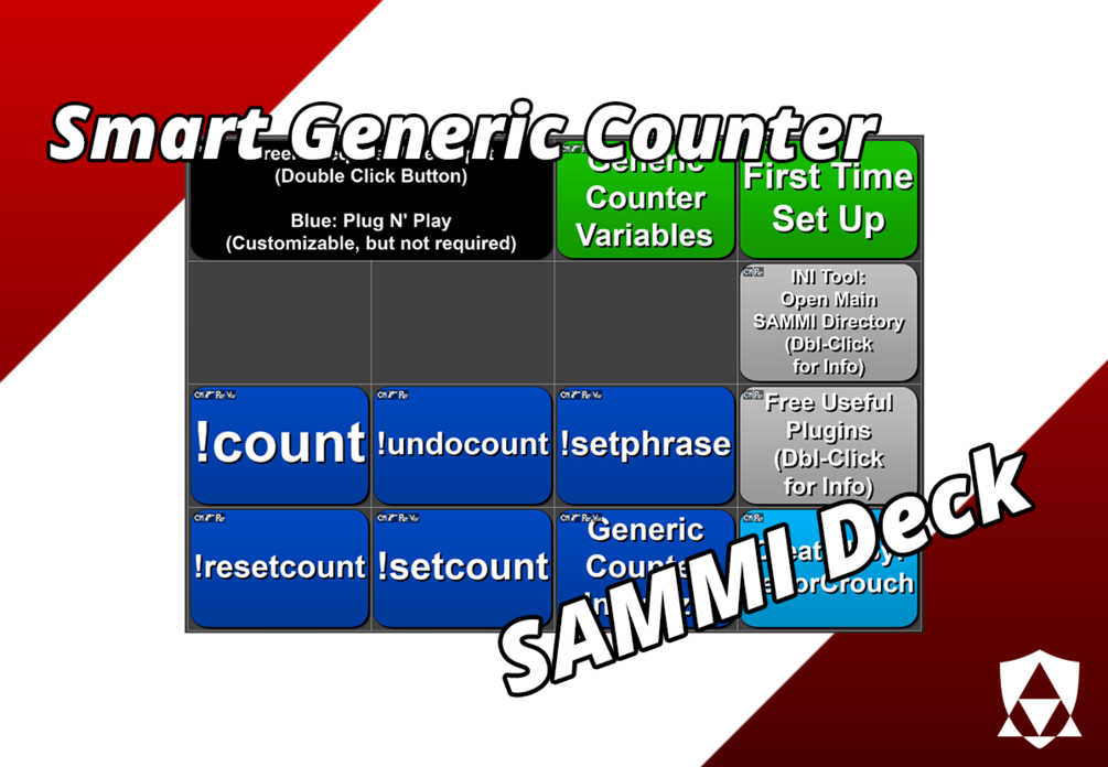 Looking for a counter but not interested in a death counter? Look no further with this Sen-Custom SAMMI Deck! This Smart Generic Counter is a sibling to my Smart Death Counter, but this time you can define the Phrase this counter will tally to! "Wrong Layer", "Bonks", "Swears", you name it, this counter will keep track! And, similar to its counterpart my Smart Death Counter, this Smart Generic Counter will keep track of your phrases and hold onto the tallies across multiple streams until you reset the counter! Setting a new phrase will have the counter begin tallying numbers to that phrase while saving the tallies from the previous phrase in case you ever want to go back to the old phrase! All you need to do is provide 1 OBS GDI+ Text Source!
